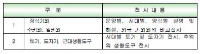 - 하반기 : 유물 관련 지역 미술가, 공예가 초청 특별전 개최