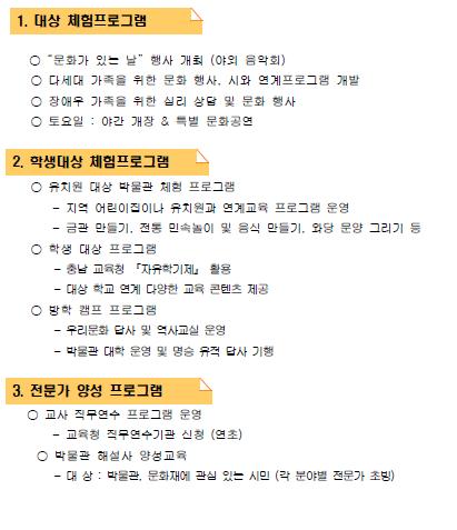 시행함으로서 바람직한 문화 교육의 모델을 구축하고, 궁극적으로 아산시의 관광 사업의 극대화와 수요자 중심의 문화재
