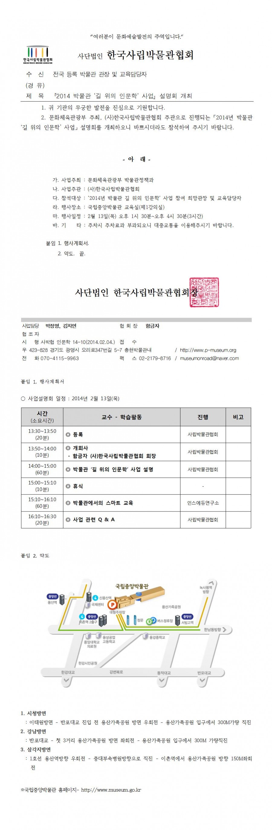 [인문학]『2014 박물관 ‘길 위의 인문학’ 사업』설명회 개최
