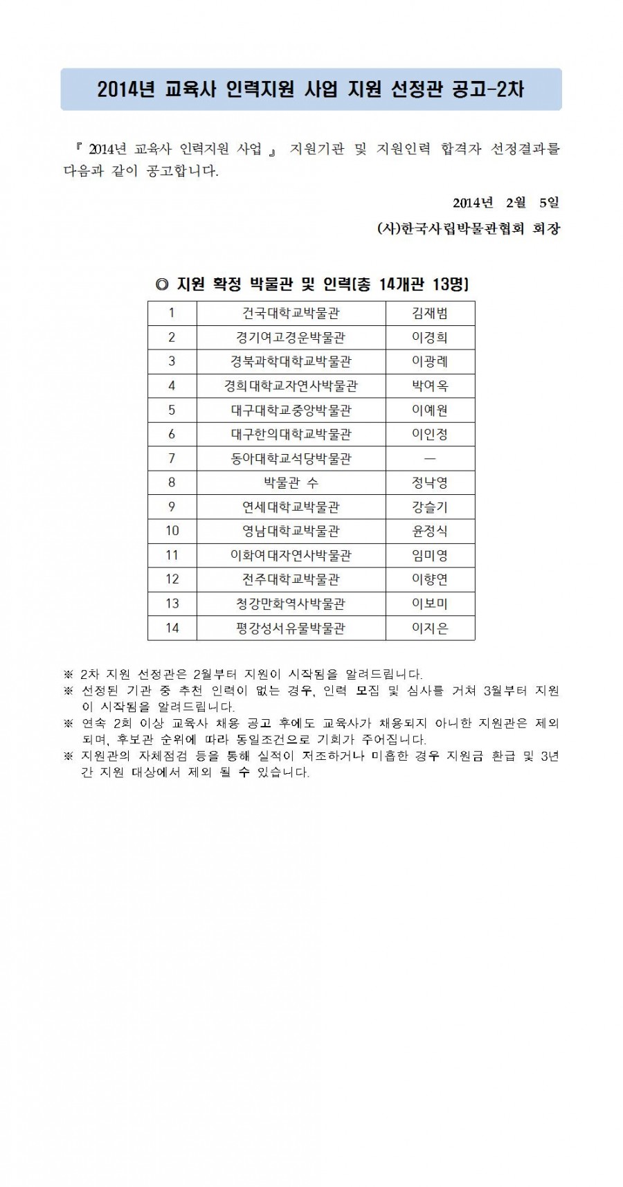 『 2014년 교육사 인력 지원사업 』 지원기관 선정 공고 - 2차 페이지 정보 작성자 관리자 작성일14-02-05 14:10 조회40,442회 댓글0건 관련링크 이전글 다음글 목록 본문 댓글목록 등록된 댓글이 없습니다. 이전글 다음글 목록