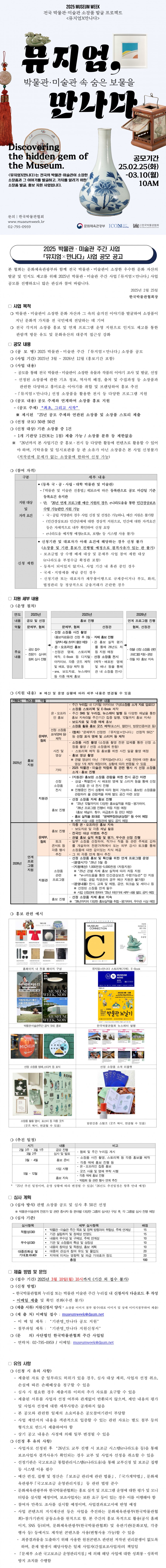 한국박물관협회에서는 『2025년 박물관·미술관 주간, 뮤지엄×만나다』 사업을 공모하고 있습니다.